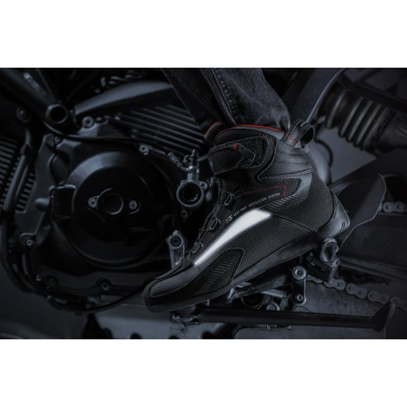 EXO VENTED to idealny wybór dla wszystkich, którzy uwielbiają jazdę w letnie dni. Lekkie, krótkie buty motocyklowe zaprojektowane przede wszystkim z myślą o ulicach metropolii, sprawdzą się również na szybkie wypady poza miasto. Mocno wentylowane, dzięki wydajnym panelom meshowym na dużej powierzchni buta oraz wyściółce 3D Mesh. Posiadają wzmocnienia w strategicznych miejscach aby zapewnić każdemu motocykliście odpowiedni komfort oraz najwyższy poziom ochrony. Użyty w butach mechnizm ATOP, służący do sprawnego zapinania buta, gwarantuje idealne dopasowanie przy obsłudze zapięcia jedną ręką za pomocą pokrętła. Wykonane z naturalnego zamszu oraz bezpiecznej, poliamidowej siatki, posiadają nagumowane nakładki na noskach do zmiany biegów o podwyższonej przyczepności.