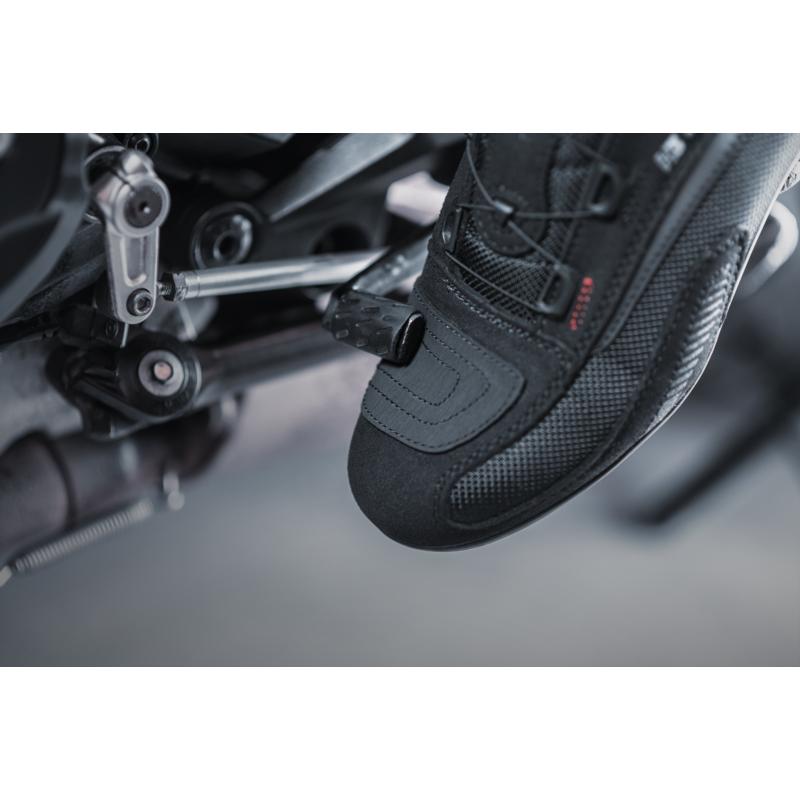 użyteczności i wygodzie. Zakładanie butów motocyklowych, jako jedna z ostatnich