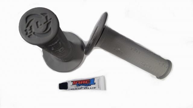 Manetki wykonane są z podwójnej warstwy specjalnej mieszanki gumy Krayton, która jest miękka a zarazem odporna na ścieranie. W zestawie z gripami klej do zamocowania rączek na kierownicy.