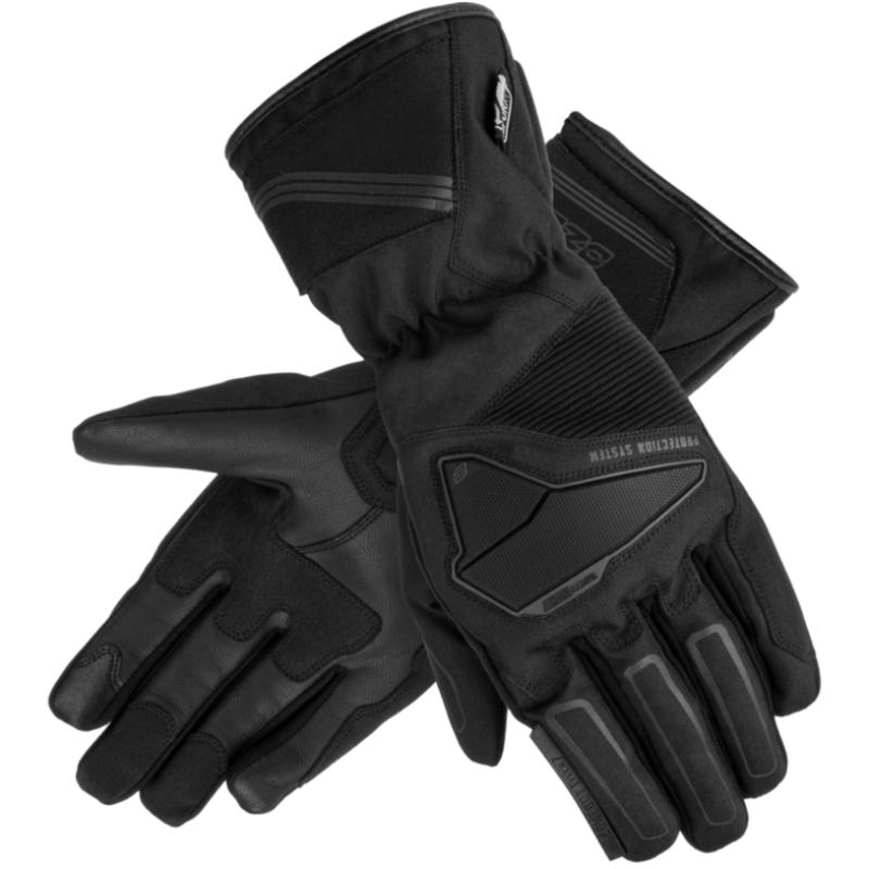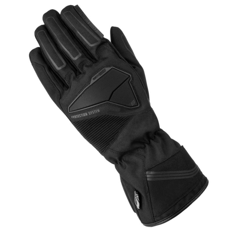 Rękawice motocyklowe z koziej skóry, poliestru, nylonu i amary z podszewką micro mesh. Mają wodoodporną membranę HIPORA®, twardą osłonę palców, panele na kostkach z pianki absorbującej uderzenia, panel polepszający chwyt, ocieplinę wewnątrz,a także wycieraczkę do wizjera na palcu.